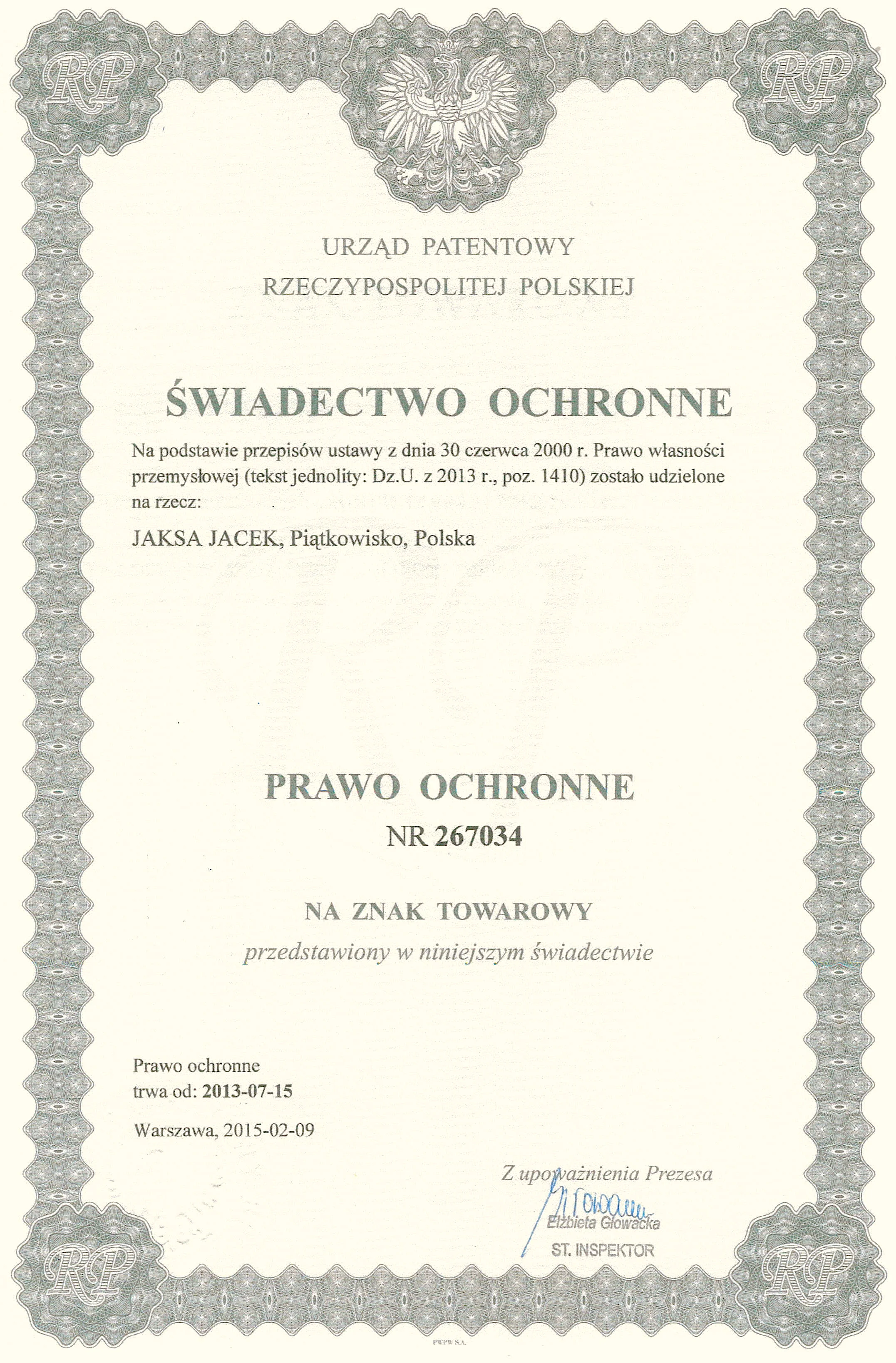 Firma pracuje w oparciu o wdrożoną normę ISO 9001: 2008. Posiada również nadane przez Urząd Patentowy RP Prawo Ochronne na znak towarowy.